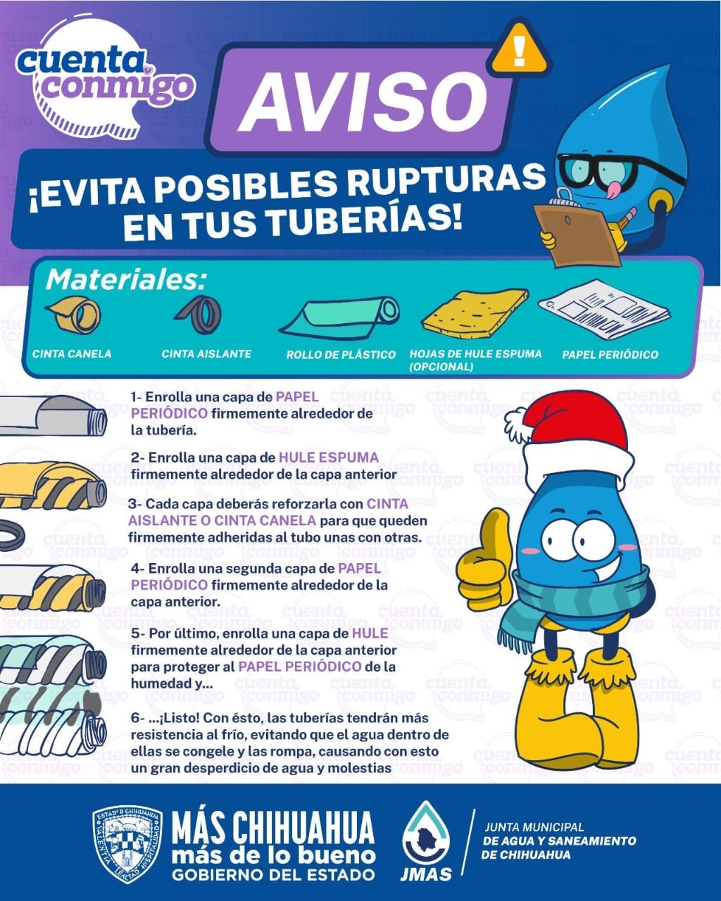 Con estas sencillas pero importantes recomendaciones que emite la JMAS, se garantiza que todas las familias chihuahuenses mantengan el acceso al agua potable durante esta temporada invernal.
