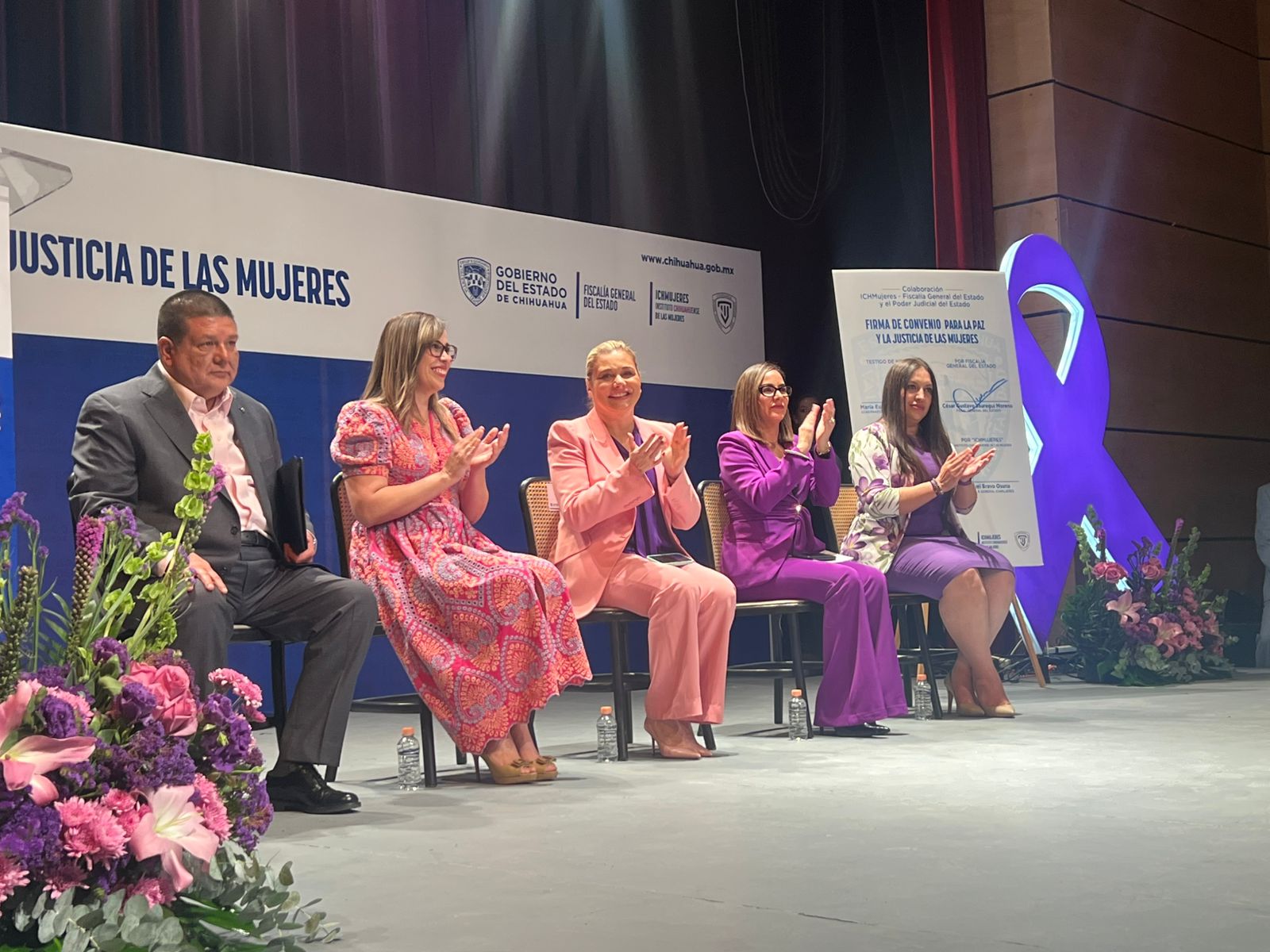 La firma del convenio se llevó a cabo en el Teatro de Cámara “Fernando Saavedra”, donde participaron la titular de la Fiscalía Especializada de la Mujer, Wendy Paola Chávez, la directora del ICHMujeres, Raquel Bravo Osuna, la magistrada presidenta del Poder Judicial, Marcela Herrera Sandoval, y el fiscal general César Jáuregui Moreno.