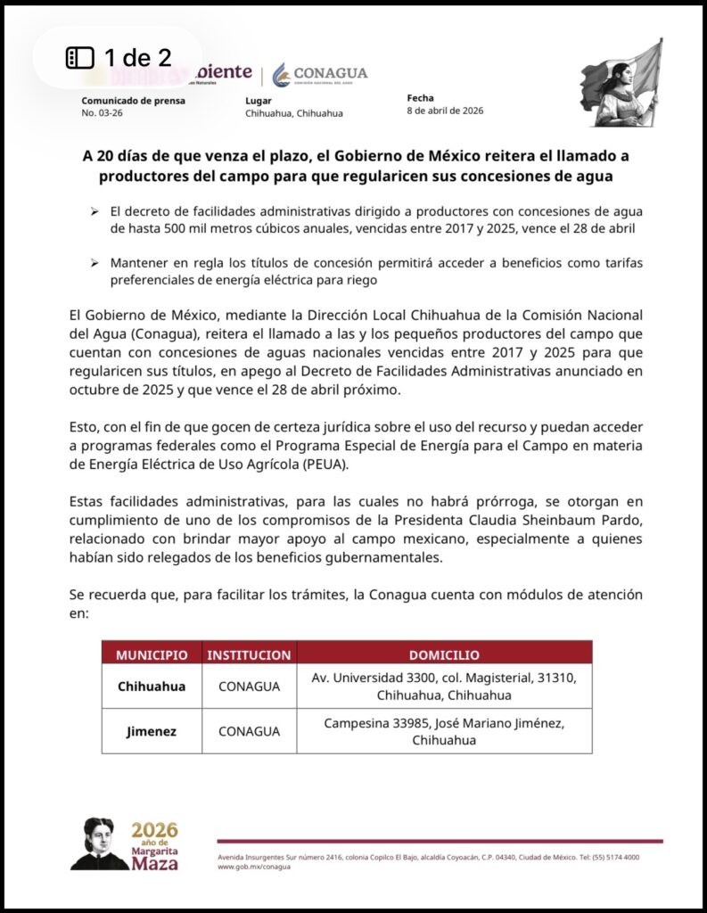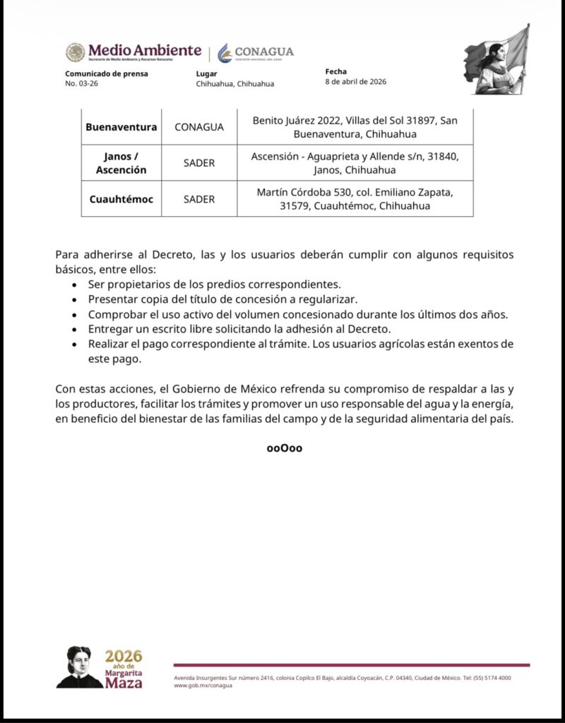 El Gobierno de México, mediante la Dirección Local Chihuahua de la Comisión Nacional