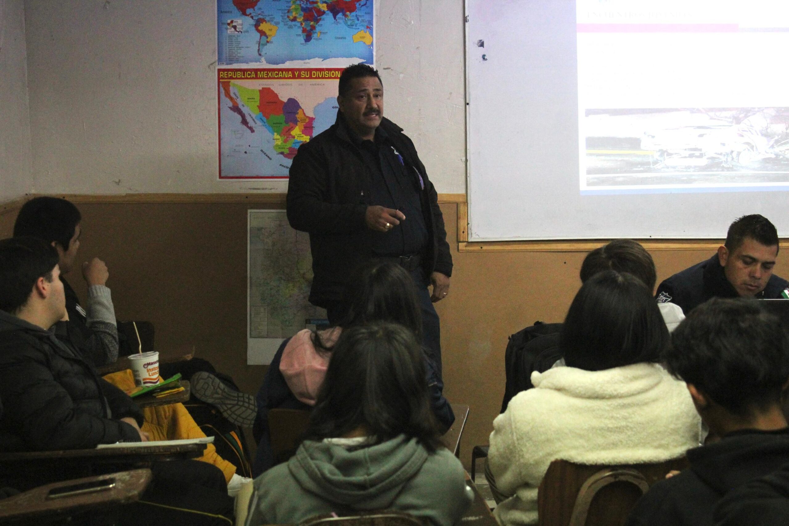 Elementos de la Secretaría de Seguridad Pública del Estado (SSPE) impartieron charlas informativas al alumnado de la preparatoria Ignacio Allende, con la finalidad de concientizar a los jóvenes sobre temas de seguridad vial.