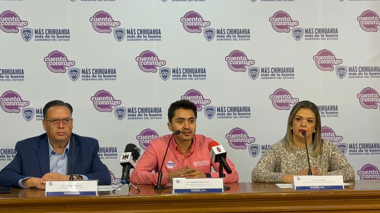 Durante la presentación del proyecto en Palacio de Gobierno participaron Alejandro Galicia Arias, jefe del Departamento de Agroindustria; Juan Carlos Astorga, presidente del Clúster Agroindustrial; y Liliana Chávez, gerente de Operaciones de Canacintra Chihuahua.