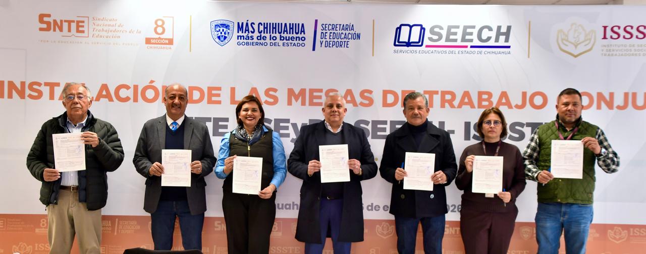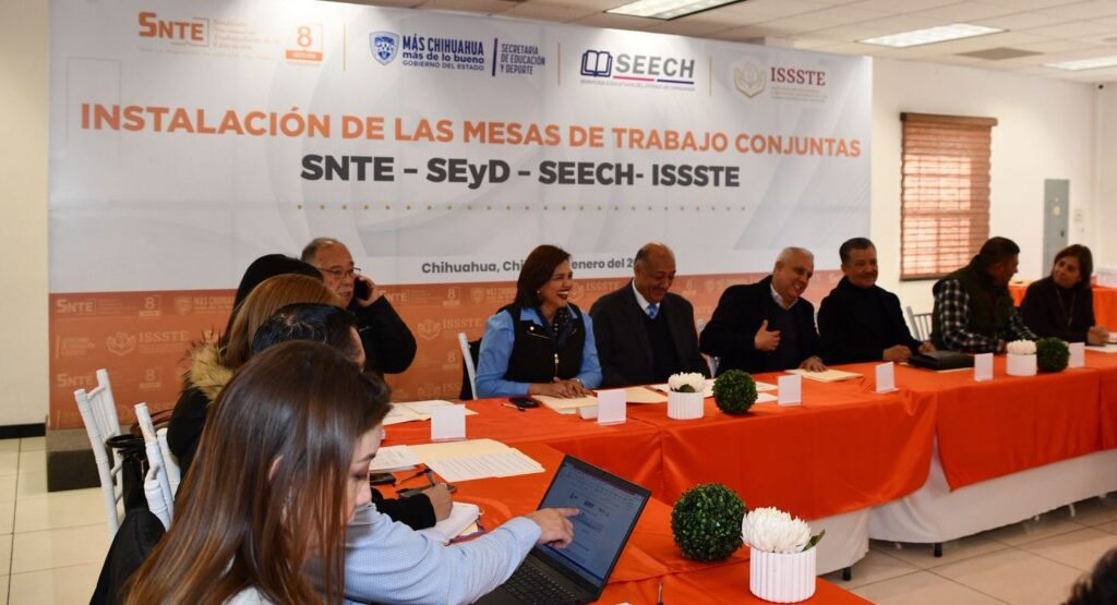 La Secretaría de Educación y Deporte (SEyD), Servicios Educativos del Estado de Chihuahua (Seech), la Sección 8 del Sindicato Nacional de Trabajadores de la Educación (SNTE) y el Instituto de Seguridad y Servicios Sociales de los Trabajadores del Estado (Issste), llevaron a cabo la instalación de mesas de trabajo conjuntas para analizar acciones que permitan una mayor armonización y vinculación interinstitucional.