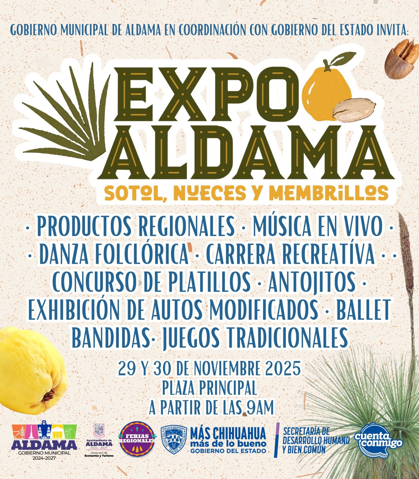 Invitan a ser parte de la Expo Aldama: Sotol, Nueces y Membrillos 2025