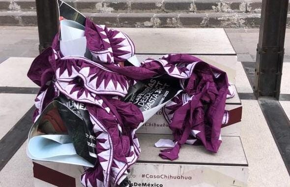 Los guardias de seguridad del Palacio de Gobierno de Chihuahua tomaron nota de un inusual hallazgo frente al edificio estatal, específicamente en las llamadas “Alas de México”. Se descubrió un atuendo indígena envuelto en lonas sobre la escalinata ubicada en la calle Libertad entre Carranza y Vicente Guerrero.