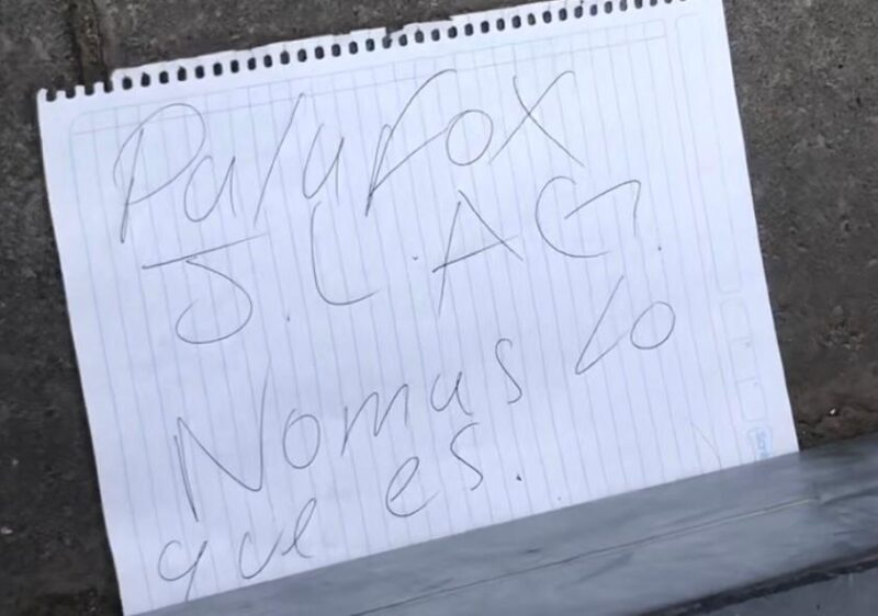Junto al atuendo, se encontró una hoja de cuaderno con la inscripción “Palafox J.L.A.G. nomas lo que es”. Ante el descubrimiento de estos elementos misteriosos, los guardias procedieron a asegurar el atuendo y el mensaje para retirarlos del lugar.