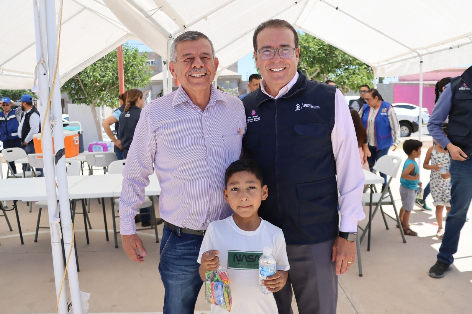 • El evento contó con la destacada presencia de altos funcionarios que reforzaron el apoyo y coordinación institucional, entre ellos estuvieron el Mtro. Mario Mata, Director Ejecutivo de la JCAS, Paco Navarro, Director de Comercialización JCAS, la Arq. Miriam Soto Ornelas, Presidenta Municipal de Meoqui y C. José Luis Cisneros Carlos, director ejecutivo de JMAS Meoqui.