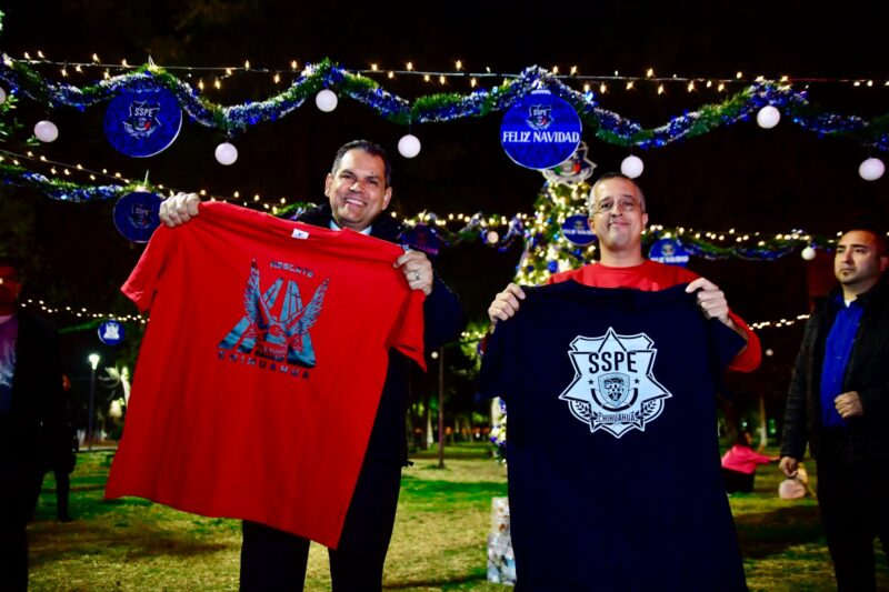 Acompañados de sus familias y miembros de la comunidad, elementos de la Secretaría de Seguridad Pública del Estado (SSPE), así como la agrupación Rescate Juvenil Deportivo, realizaron el tradicional encendido del Árbol de Navidad en las instalaciones del Instituto Chihuahuense del Deporte y la Cultura Física.