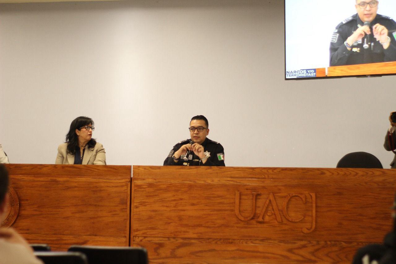 Con el objetivo de reforzar su compromiso con la formación académica y el análisis crítico, personal de la Secretaría de Seguridad Pública del Estado (SSPE) participó en el conversatorio “Narcos y/o Terroristas”, realizado en el Instituto de Ciencias Sociales y Administración, de la Universidad Autónoma de Ciudad Juárez (UACJ).