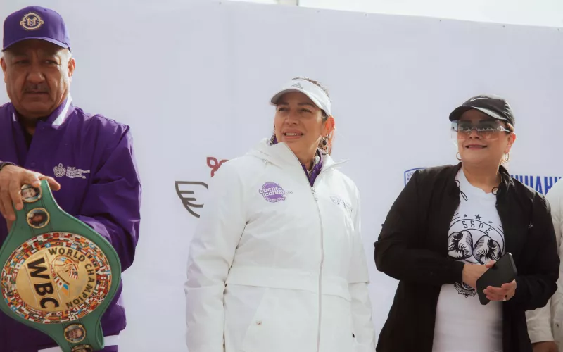 En el marco del Día Internacional del Deporte para el Desarrollo y la Paz, este domingo se llevó a cabo la Clase Nacional de Boxeo “Por la paz y contra las adicciones”, con la participación y activación de 10 mil chihuahuenses en la Plaza del Ángel de la capital.