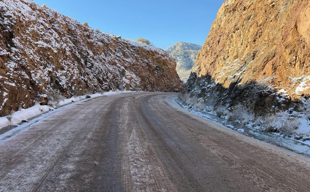 La llegada de la primera nevada de la temporada invernal ha impactado las vialidades en el norte de Chihuahua, específicamente en la carretera federal Janos-Agua Prieta, donde se han registrado condiciones resbaladizas que afectan la circulación vehicular.