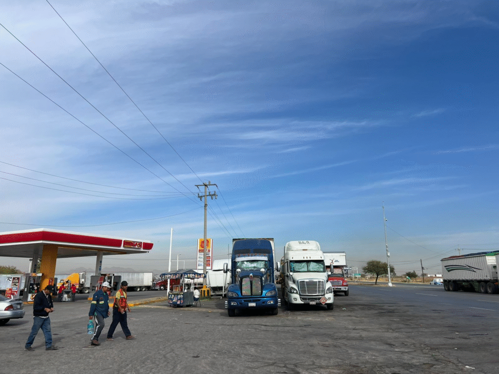 Filas interminables y afectaciones directas Desde el viernes, cientos de camiones de carga permanecen varados en tramos como la salida a Delicias, la carretera Chihuahua–Delicias (a la altura de Lázaro Cárdenas), y el kilómetro 205 hacia San Judas Tadeo. Los transportistas reportan que algunos llevan hasta tres días sin poder avanzar, sin dinero, sin comunicación constante con sus familias y con dificultades para acceder a servicios básicos como baños, comida y recarga de dispositivos. Muchos de los camiones transportan alimentos perecederos, lo que obliga a los operadores a mantener encendidos los sistemas de refrigeración, incrementando el consumo de diésel y sus costos operativos.