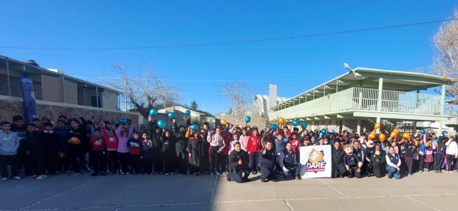 Asimismo, los agentes de la SSPE compartieron con al menos 300 niñas y niños de la Escuela Primaria T. G. Praxedis G. Guerrero, con el propósito de implementar la iniciativa D.A.R.E. Centinela, por medio de la cual se realizan acciones conjuntas en contra del consumo de sustancias tóxicas y adicciones entre los jóvenes.