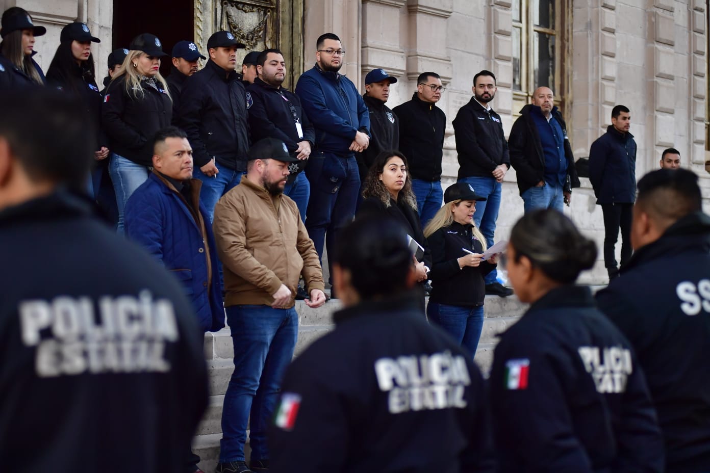 Personal de Asuntos Internos de la Secretaría de Seguridad Pública del Estado (SSPE) llevó a cabo un pase de lista a elementos de las distintas áreas operativas que custodian las instalaciones del Palacio de Gobierno este 8 de marzo.