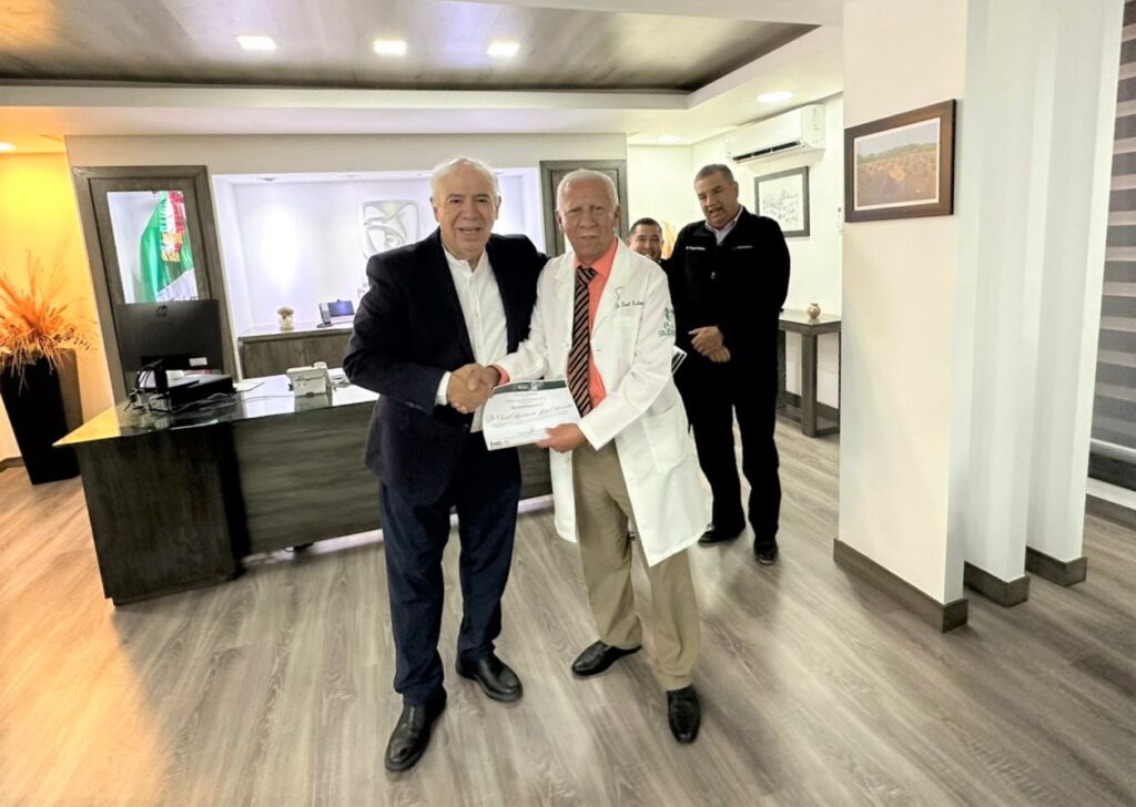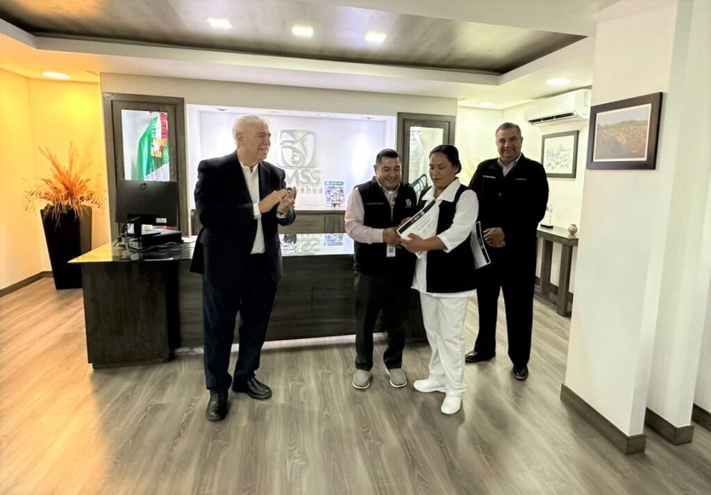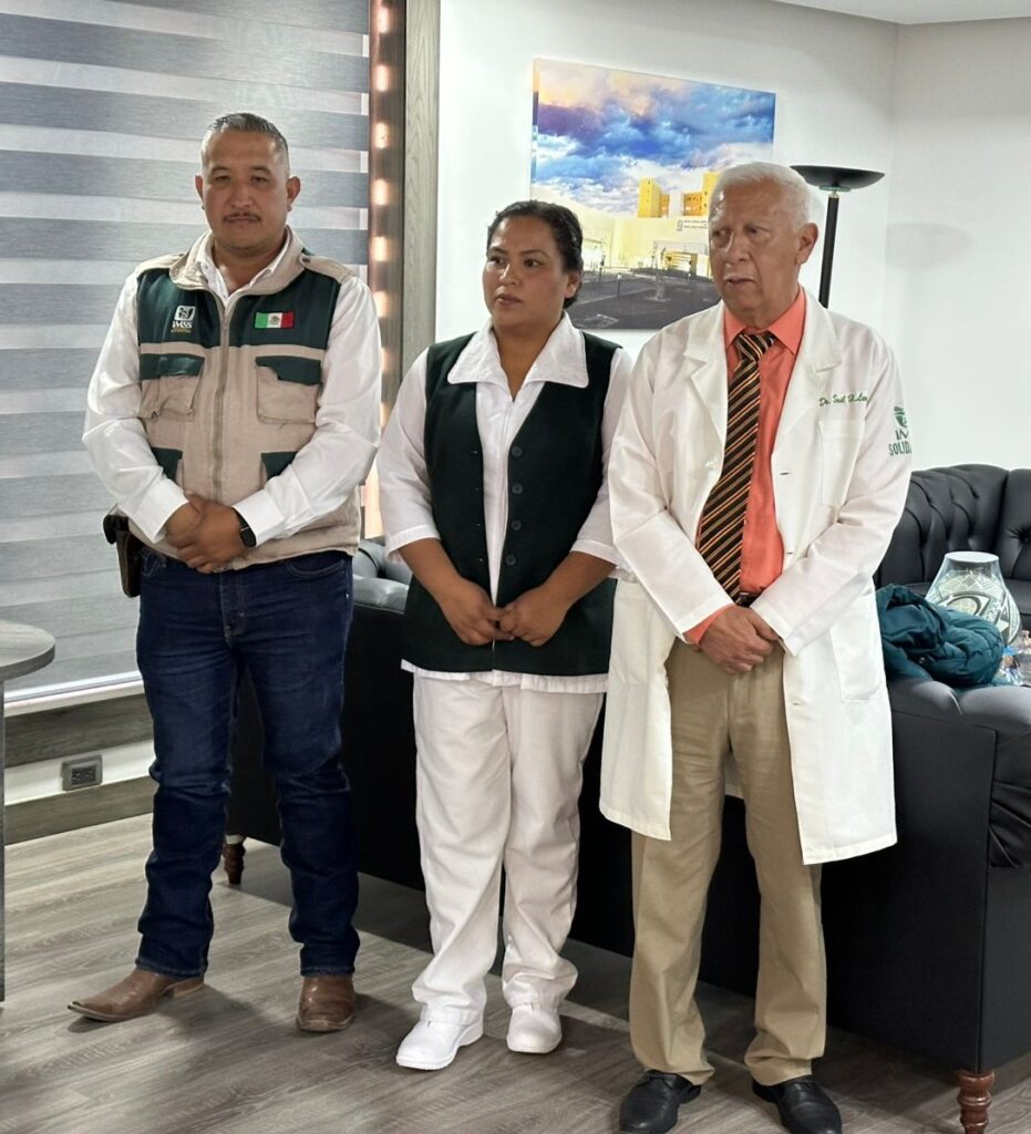 El titular del IMSS en la entidad, doctor José Antonio Zamudio González, encabezó la entrega del reconocimiento y resaltó la solidaridad de los doctores Saúl Humberto Lara Mercado y Sergio Adrián Mendoza Sánchez; de la enfermera Ana Lilia Monclova Valois y del ingeniero César Alonso Pérez Domínguez, integrantes de la Unidad Médica Móvil de la Zona San Juanito.