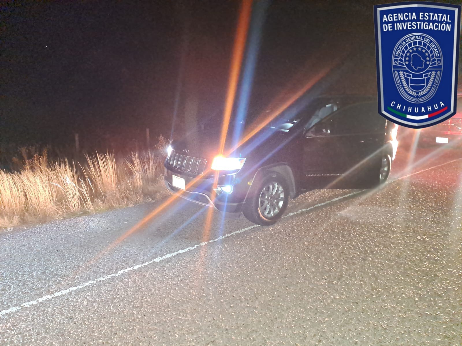 Elementos de la Agencia Estatal de Investigación (AEI) de la Fiscalía de Distrito Zona Sur, recuperaron una camioneta marca Jeep, línea Cherokee, modelo 2014, de color verde, momentos después de que fuera reportada como robada en la avenida Independencia de la ciudad de Parral, en hechos ocurridos la tarde de ayer lunes 18 de noviembre.