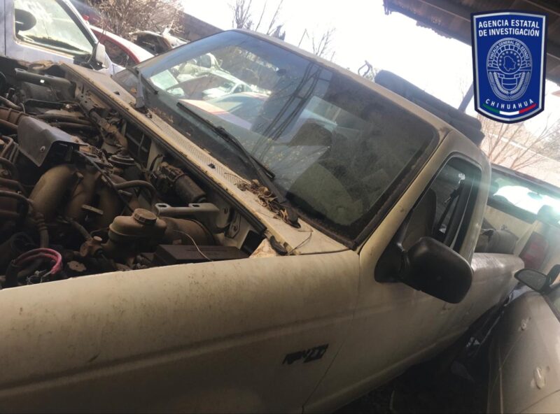 En un corralón de grúas ubicado en las calles 31 y Guadalupe Victoria, encontraron una de las unidades, este de la marca Ford, línea Ranger, modelo 1999, color blanco, sin placas de circulación, que fue robado el 27 de mayo del 2011, en la ciudad de Chihuahua.