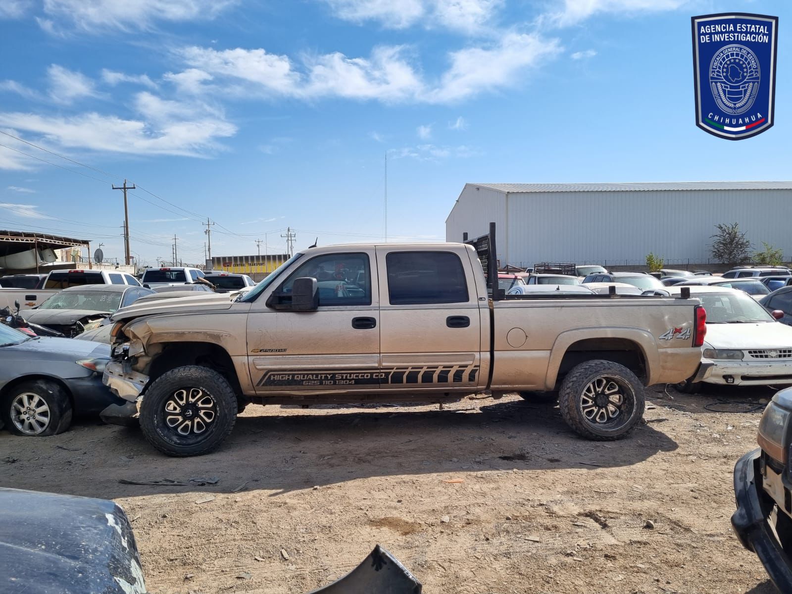 Elementos de la Agencia Estatal de Investigación, adscritos a la Fiscalía de Distrito Zona Occidente, aseguraron un vehículo tipo pick up, Chevrolet, Silverado, modelo 2005, color arena el cual resultó con reporte de robo.