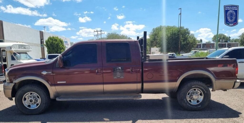 En la carretera que conduce de Álvaro Obregón (Rubio), al municipio de Bachíniva, revisaron una pick up, Ford, línea F-250, modelo 2006, color guinda con placas del estado de Chihuahua, la cual contaba con reporte de robo en el municipio de Guerrero desde el 28 de octubre del 2024.