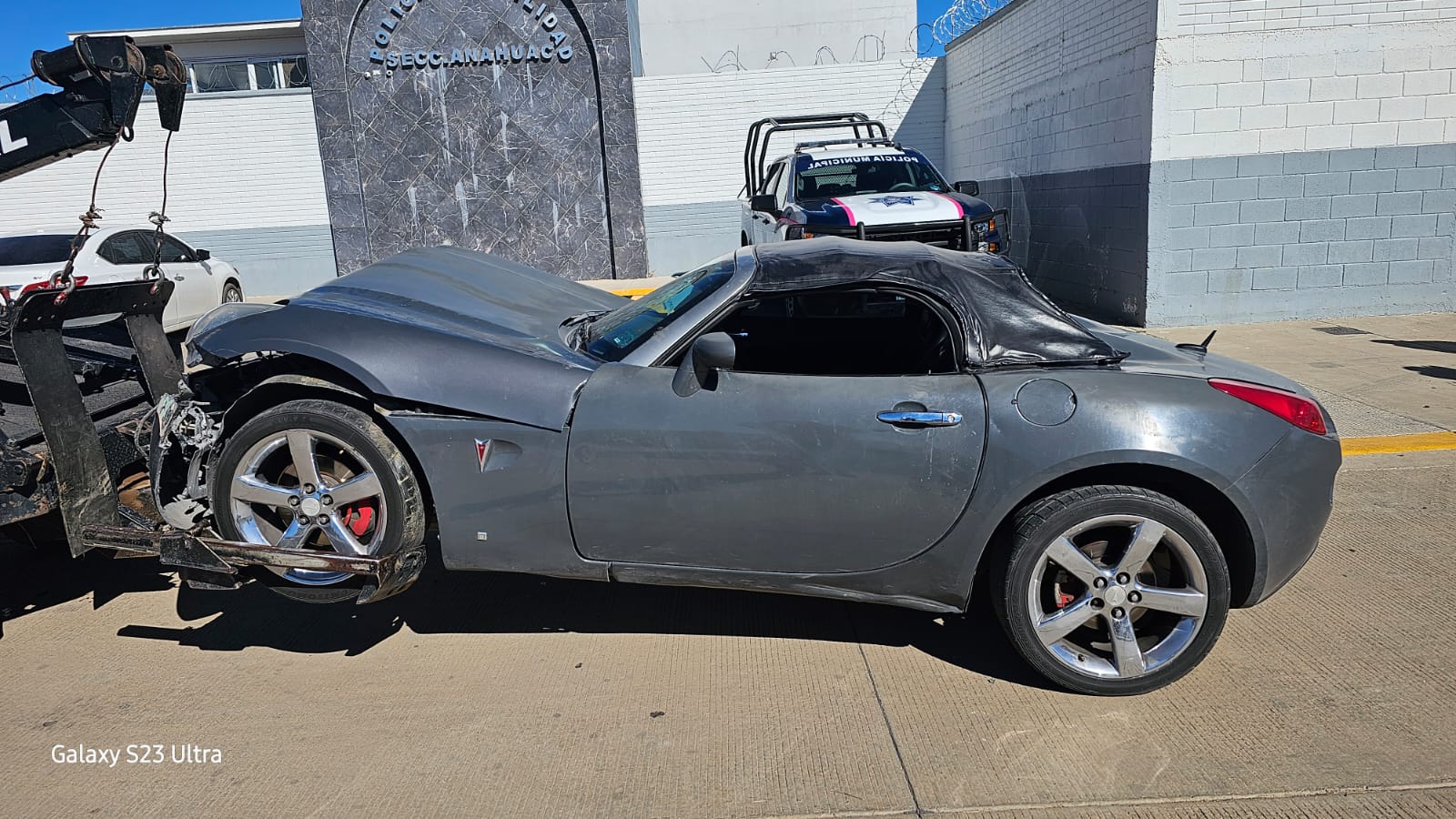 Dicho automotor corresponde a un Pontiac, modelo 2008 de color gris, el cual fue asegurado por los elementos adscritos a la Subsecretaría de Despliegue Policial de la SSPE. Asimismo, se aseguró también un vehículo de la marca Nissan, modelo 1997, que acompañaba en el trayecto al ya mencionado coche con reporte.