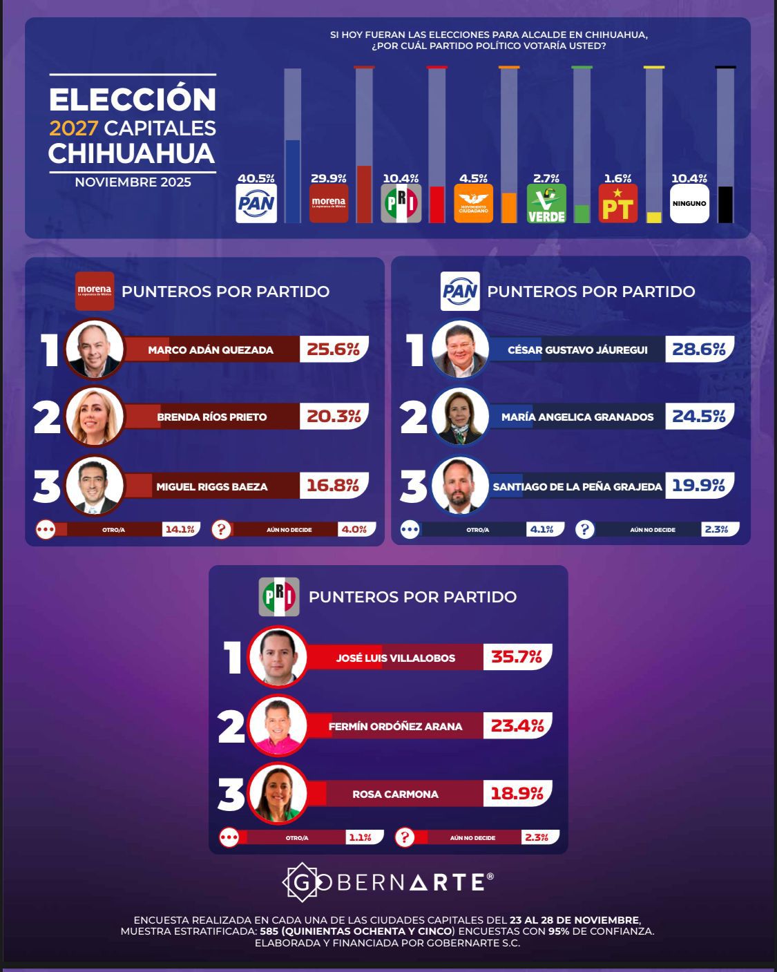 El crecimiento sostenido de De la Peña confirma un reacomodo interno en el PAN rumbo al proceso electoral de 2027 y lo posiciona como un actor relevante en la sucesión municipal de Chihuahua capital.