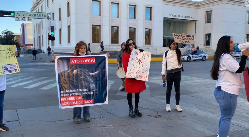 Los manifestantes bloquearon la calle 11 en el Centro de la ciudad, esto con el fin en rechazo del evento taurino que se realizará el próximo 23 de noviembre en la Plaza de Toros.