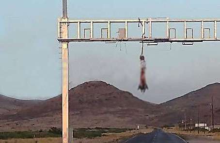 De acuerdo con el reporte, fue localizado sobre carretera que conduce de Casas Grandes a Colonia Juárez, en el municipio de Casas Grandes, se tuvo a la vista un cuerpo sin vida del sexo masculino, el cual se encuentra suspendido de un señalamiento, amarrado de las extremidades inferiores con una soga, se localiza semidesnudo, con los testículos en la boca y con una cartulina que contiene una leyenda pegada al cuerpo.