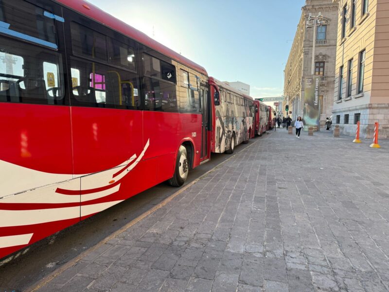 Entre 20 y 30 camiones del transporte colectivo detuvieron su marcha sobre las avenidas Carranza, Aldama, Escorza y Vicente Guerrero, con el fin de visibilizar sus demandas sin bloquear por completo la circulación.