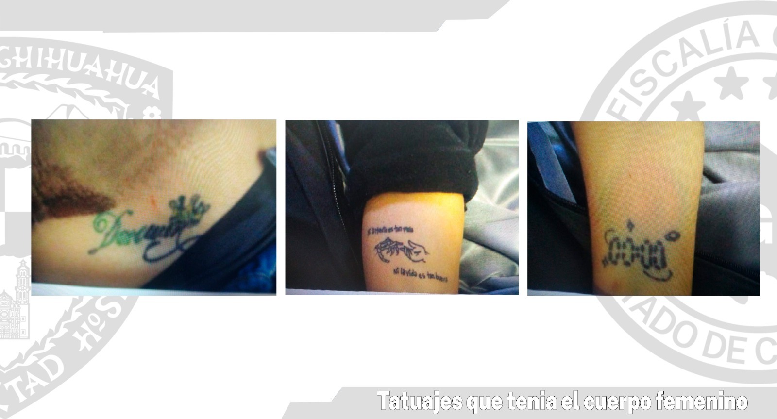 Como señas particulares presenta tatuajes en el cuello con la leyenda “never alon”, en el antebrazo derecho la leyenda “ni la muerte es tan mala ni la vida tan buena”, y en la cadera lado derecho la leyenda “Darwin”.