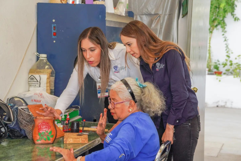 La secretaria de Desarrollo Humano y Bien Común, Carla Rivas, realizó una visita para conocer y supervisar las actividades que se imparten a personas mayores o con alguna discapacidad en la Escuela de Artes y Oficios de la Capital del Estado.
