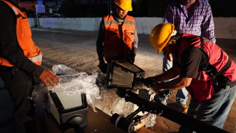 La pavimentación se llevó a cabo con concreto hidráulico estampado en un área de más de 8 mil metros cuadrados, y ahora se ha iniciado con la instalación del nuevo alumbrado que constará de 160 luminarias en 80 postes a lo largo de la calle principal del pueblo mágico.