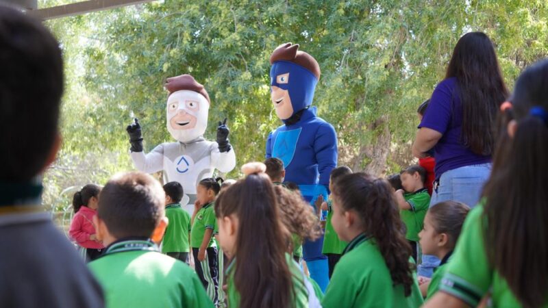 Los Aguardianes de la Junta Municipal de Agua y Saneamiento (JMAS) de Chihuahua, visitaron a los alumnos del jardín de niños Gabriela Mistral, a quienes invitaron a formar parte del proyecto para el cuidado del recurso potable en la capital.