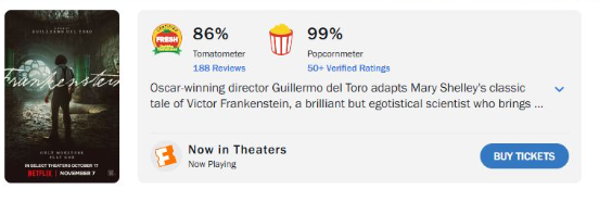 ‘Frankenstein’ de Guillermo del Toro sorprende con su calificación en Rotten Tomatoes