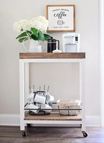 Si no tienes suficiente espacio puedes ayudarte con cualquier mueble auxiliar, como un carrito con ruedas, estanterías o baldas.