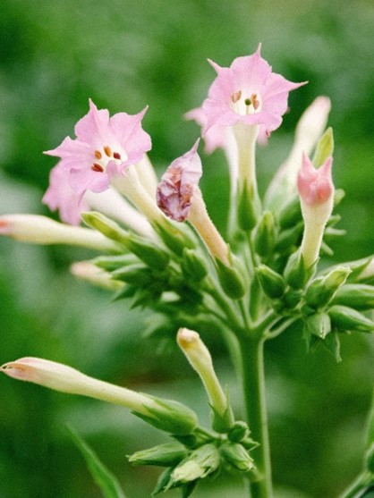 Es conocida como la planta del tabaco. Esta especie posee grandes flores de color blancas muy olorosas, abren de noches y su atractiva fragancia aparece en la madrugada.