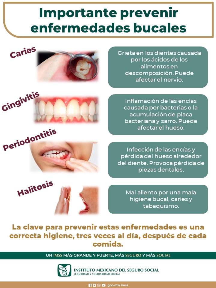 Las enfermedades bucales no sólo afectan a la zona de la boca, sino que impactan en diversas partes del organismo, de ahí la importancia de llevar a cabo una correcta higiene que garantice la eliminación de bacterias, informó la coordinadora delegacional de Estomatología del Instituto Mexicano del Seguro Social (IMSS) en Chihuahua, doctora Laura Garza Villarreal.