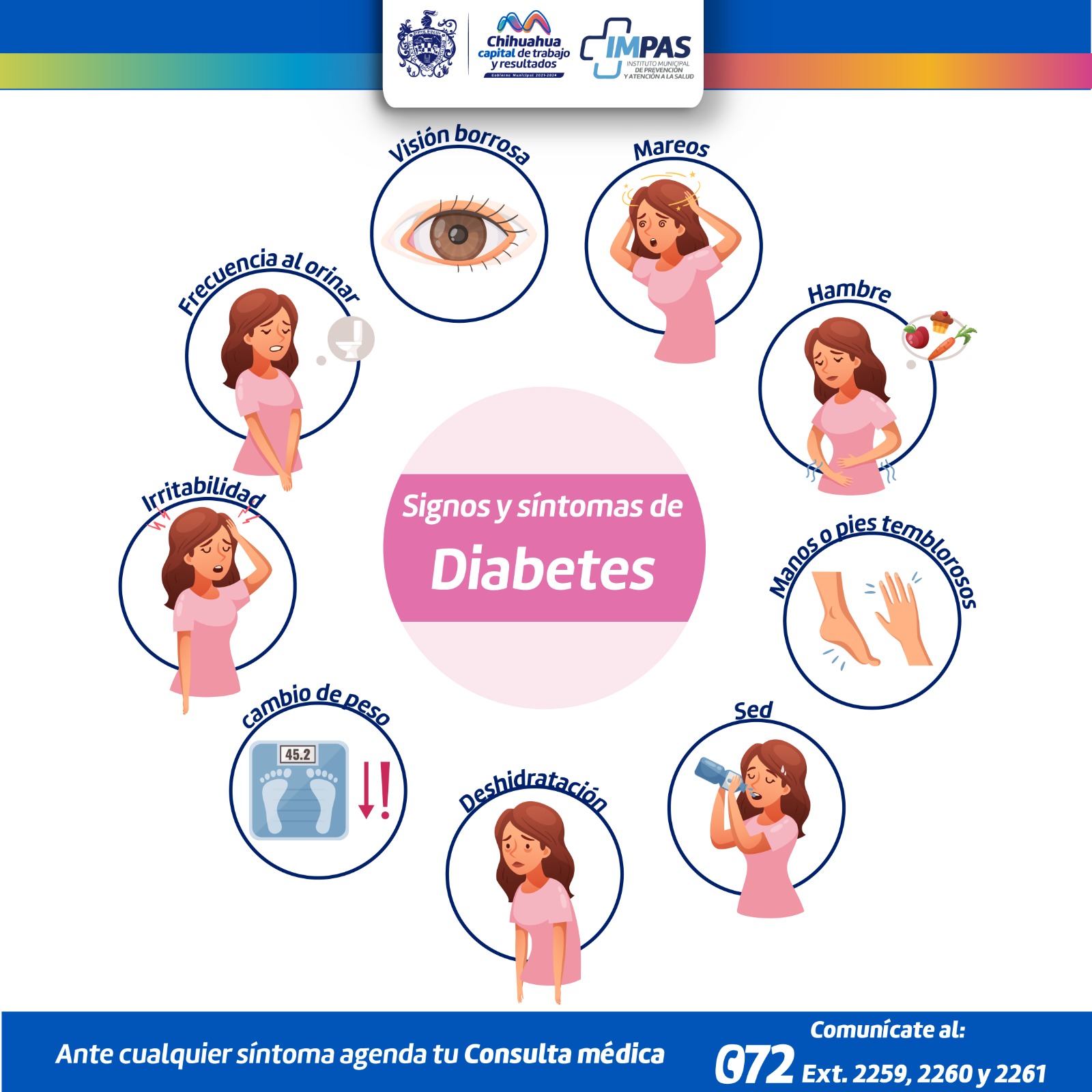 Al ser la salud uno de los pilares del Gobierno Municipal de Chihuahua, encabezado por el alcalde Marco Bonilla, a través de Instituto Municipal de Prevención y Atención a la Salud (IMPAS), se dan a conocer los signos y síntomas que pueden indicar niveles de glucosa (azúcar) irregulares en la sangre.