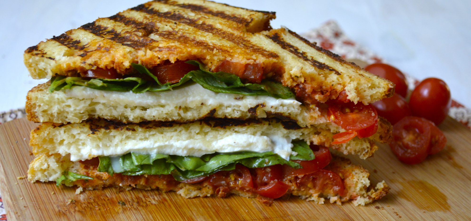 Aquí te damos una receta para un sándwich de aguacate, tomate, mozzarella al pesto y espinacas