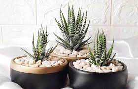 1. Haworthia: Las haworthias son suculentas compactas con hojas en forma de cuña. Son muy fáciles de cuidar y pueden tolerar condiciones de poca luz.