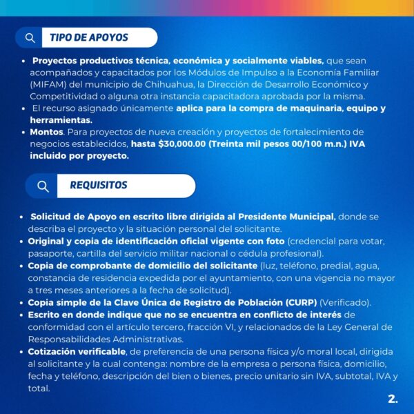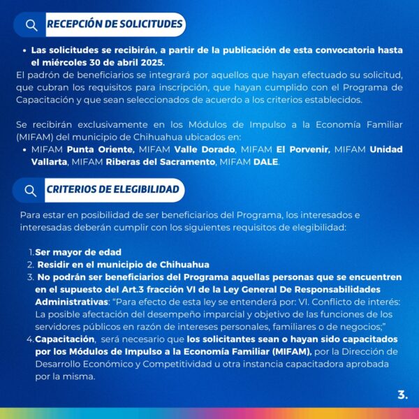 El Gobierno Municipal de Chihuahua invita a todas las personas interesadas a aprovechar esta oportunidad para fortalecer sus proyectos productivos y contribuir al crecimiento económico de la región.