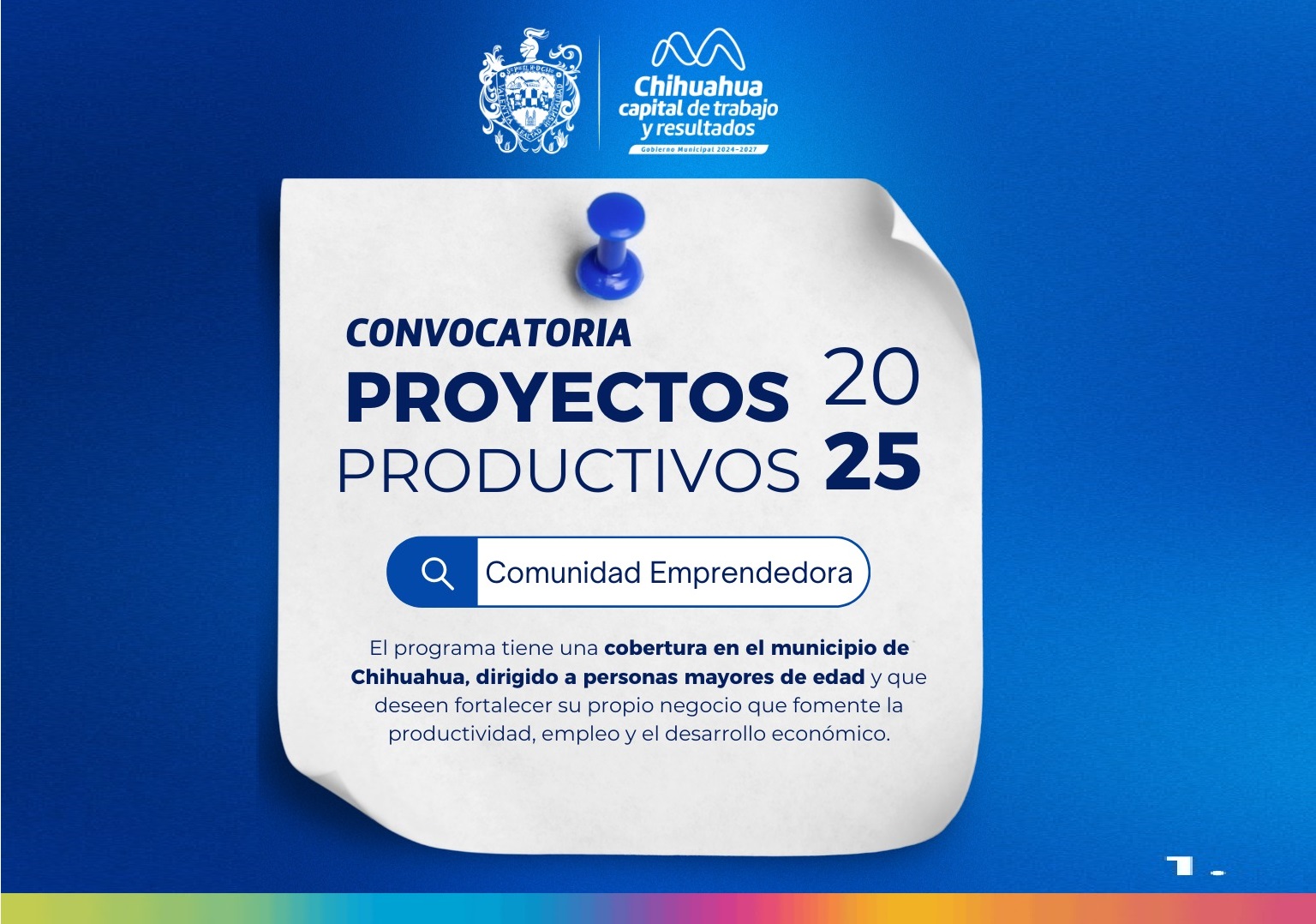 Chihuahua, Chih., a 5 de marzo 2025.- El Gobierno Municipal, abrió la convocatoria del “Programa de Proyectos Productivos 2025”, mismo que ofrecerá hasta 30 mil pesos, para uso en proyectos productivos técnica, económica y socialmente viables.