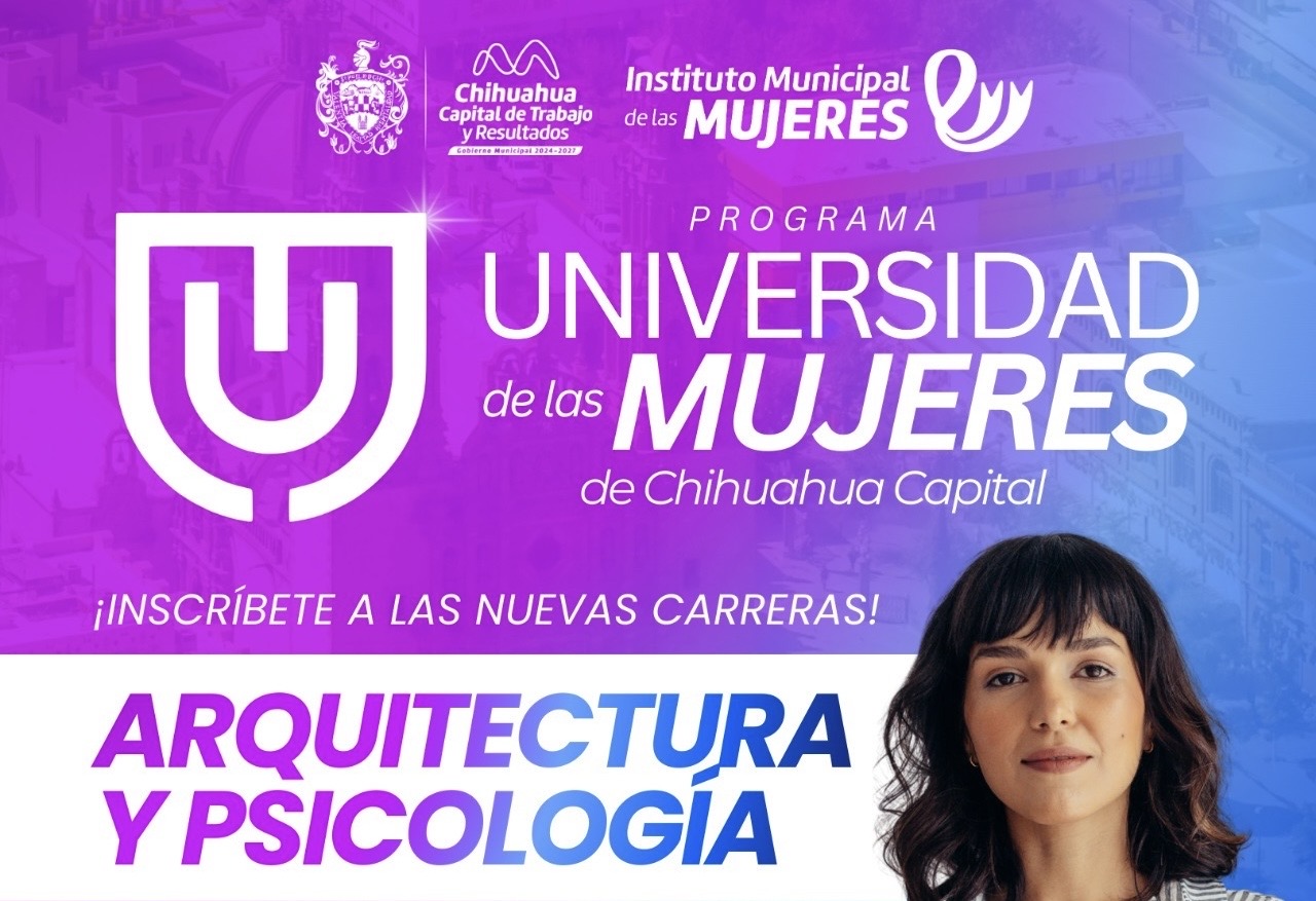 *_H. Ciudad de Chihuahua, Chih., a 1 de diciembre de 2025_*.- El Gobierno Municipal de Chihuahua, a través del Instituto Municipal de las Mujeres (IMM), informa que ya se encuentran abiertas las inscripciones para las nuevas carreras de arquitectura y psicología, ofertadas dentro del programa Universidad de las Mujeres de Chihuahua Capital.