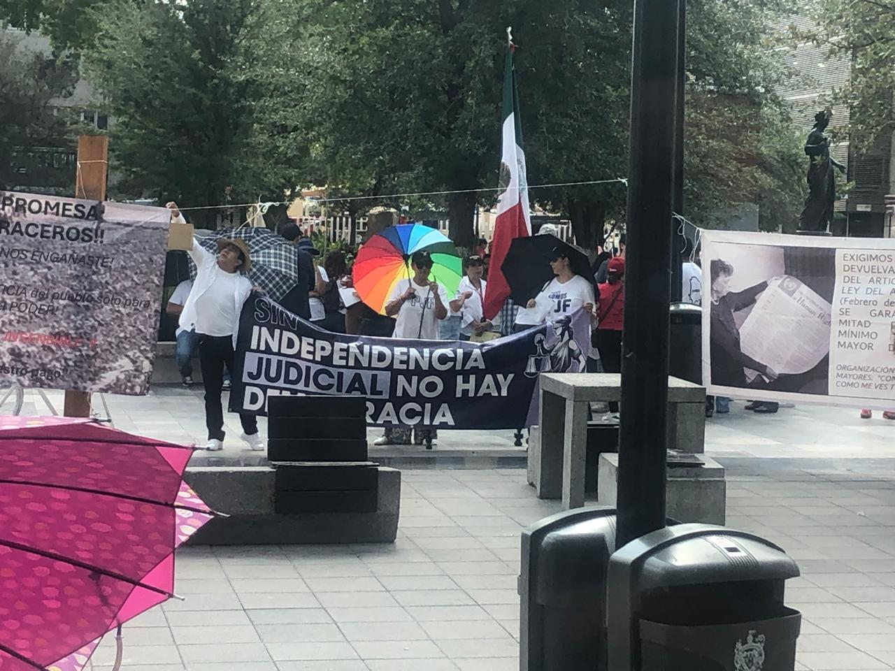 Un grupo de aproximadamente 110 a 120 trabajadores del Poder Judicial de la Federación en Chihuahua se manifestaron hoy frente al Congreso del Estado en rechazo a la propuesta de reforma constitucional a la Guardia Nacional.