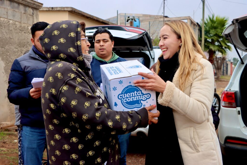 Chihuahua, Chih.– La diputada del Partido Acción Nacional (PAN), Carla Rivas, visitó la colonia 3 de Mayo donde realizó la entrega de cobijas y apoyos alimentarios a familias del sector, como parte de las acciones para apoyar a la población ante la temporada invernal.