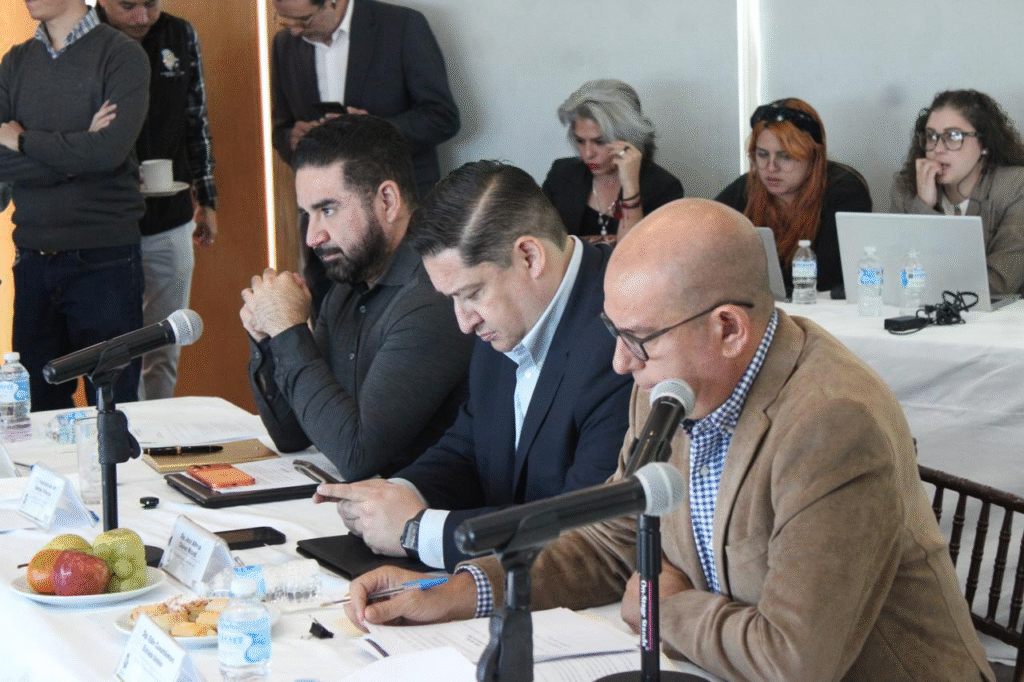 En la reunión estuvieron presentes Cuauhtémoc Estrada, presidente de la Jucopo, junto con los coordinadores y subcoordinadores de las fuerzas políticas: Alfredo Chávez y Saúl Mireles (PAN), Francisco Sánchez y Alma Portillo (Movimiento Ciudadano), Magdalena Rentería (Morena), Arturo Medina (PRI) e Irlanda Márquez (PT).