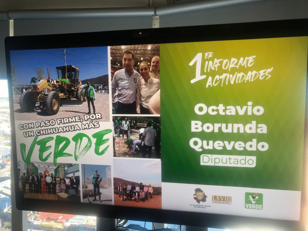 El diputado Octavio Borunda Quevedo, representante del Partido Verde Ecologista de México en el Congreso del Estado, presentó su Primer Informe de Actividades ante medios de comunicación y ciudadanos en un acto que destacó por su enfoque directo, sin eventos masivos ni publicidad costosa. El diputado subrayó que su objetivo es informar de manera clara y sin intermediarios sobre el trabajo legislativo realizado durante su primer año de gestión, tanto en el Congreso como en territorio, visitando colonias, rancherías y municipios para escuchar de viva voz las necesidades de los chihuahuenses.