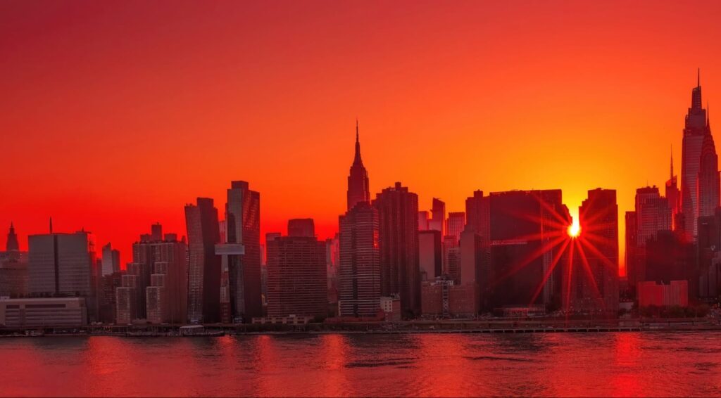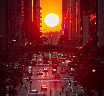 El Manhattanhenge es un fenómeno en parte natural y en parte creado, pues consiste en la alineación del sol con los edificios de la ciudad, creando una vista inigualable y perfecta para admirar y captar en fotografía.
