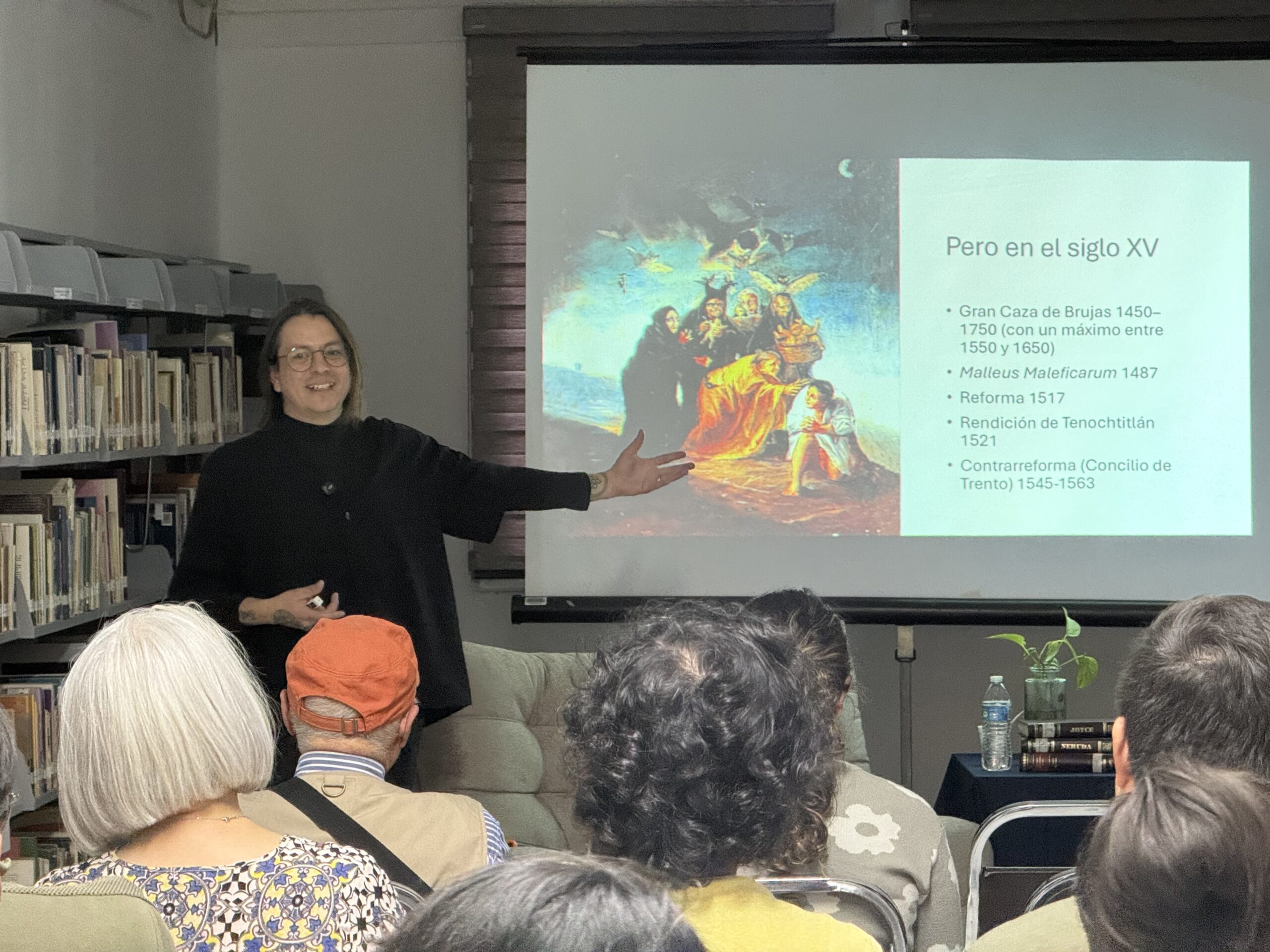 En una ponencia presentó un estudio realizado a través de varios años de la figura del diablo, desde épocas como la Edad Antigua, la Edad Media, Moderna y finalmente la figura del diablo en México.
