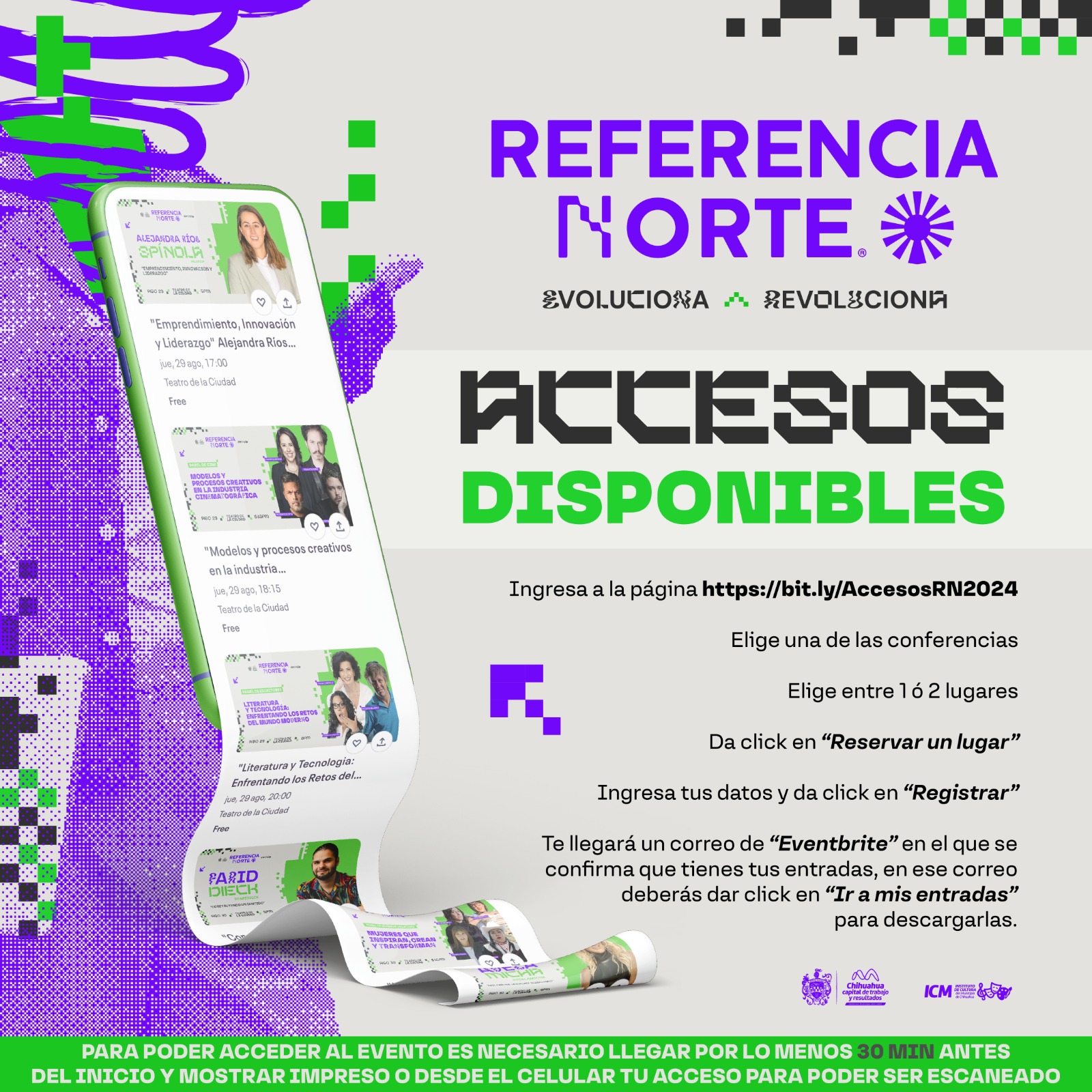 Chihuahua, Chih. A 16 de agosto de 2024.- El Instituto de Cultura del Municipio informa que a partir del lunes 19 de agosto estarán disponibles los boletos para las conferencias de Referencia Norte 2024, evento que busca inspirar y transformar a la ciudad a través de la creatividad y que contará con la participación de destacados ponentes nacionales e internacionales.