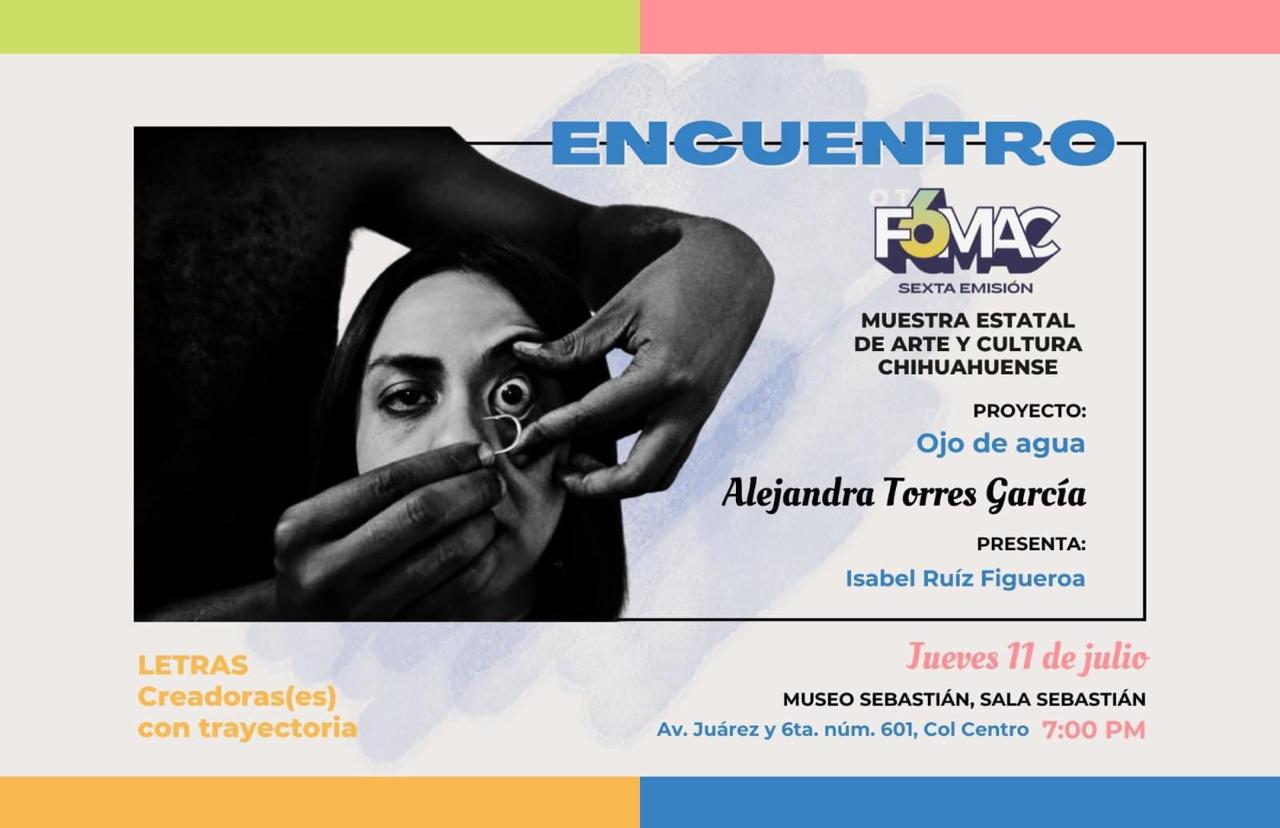 Este jueves 11 de julio, el Museo Sebastián será el escenario del encuentro FOMAC dedicado al proyecto “Ojo de Agua” de la artista Alejandra Torres García. El evento se llevará a cabo en la sala Sebastián del museo, ubicado en Av. Juárez y 6ta #601, en la Colonia Centro, a partir de las 19:00 horas.