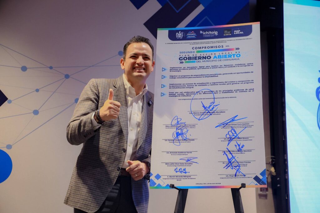 “Con la firma de estos compromisos, reiteramos que el gobierno abierto en Chihuahua no es una excepción: es una ruta. Una ruta que apuesta por la innovación pública, por el uso de tecnologías, por lenguaje claro, por formatos abiertos y por una participación ciudadana cada vez más incidente”, expresó Marco Bonilla.